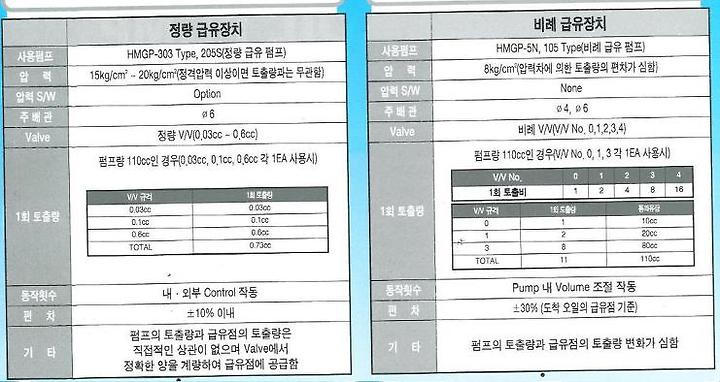 정량 급유장치와 비례 급유장치.