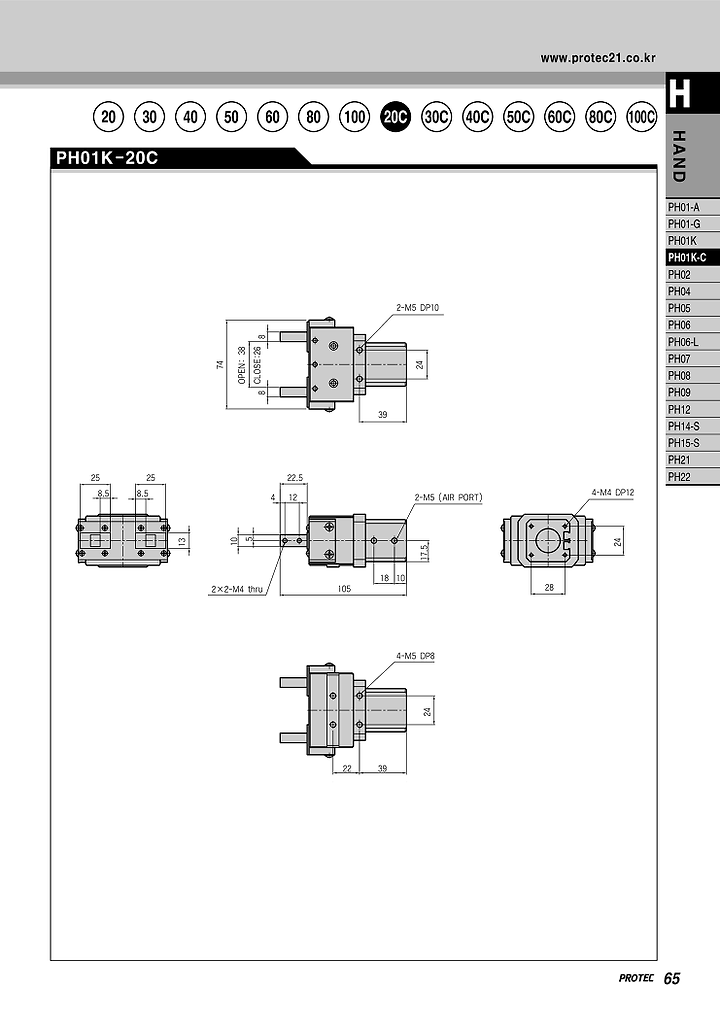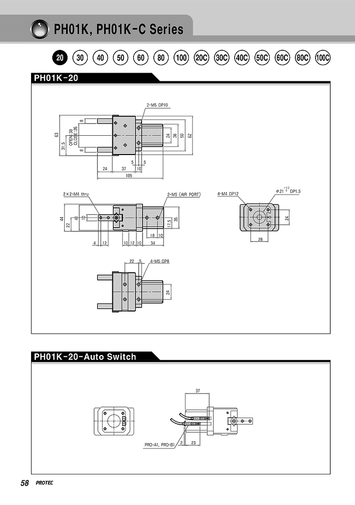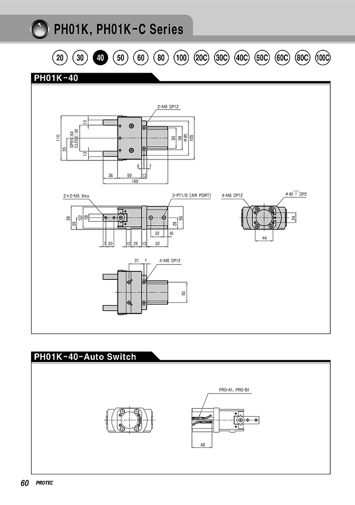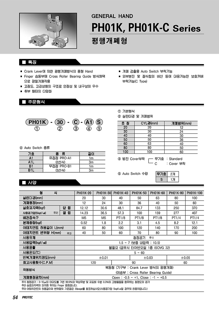 프로텍 에어척, PH01K-20, PH01K-30, PH01K-40, PH01K-50, PH01K-60, PH01K-80, PH01K-100, PH01K-20C, PH01K-30C, PH01K-40C, PH01K-50C, PH01K-60C, PH01K-80C, PH01K-100C.