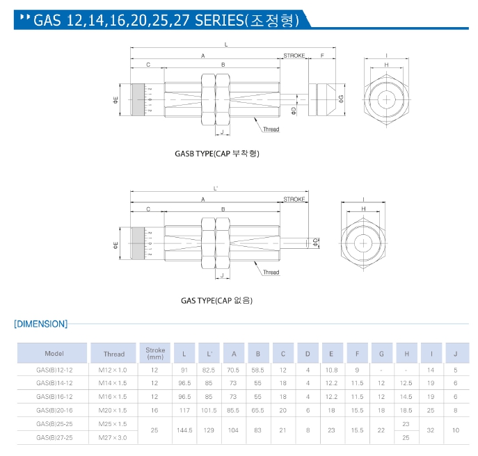 GASB25-25, GAS25-25, GASB27-25(3.0P), GAS27-25(3.0P), GASB27-25F(1.5P), GAS27-25F(1.5P) GASB27-40(2.0P), GS쇼크 압쇼바, GS SHOCK ABSORBER.GS 쇼바, 쇼바.