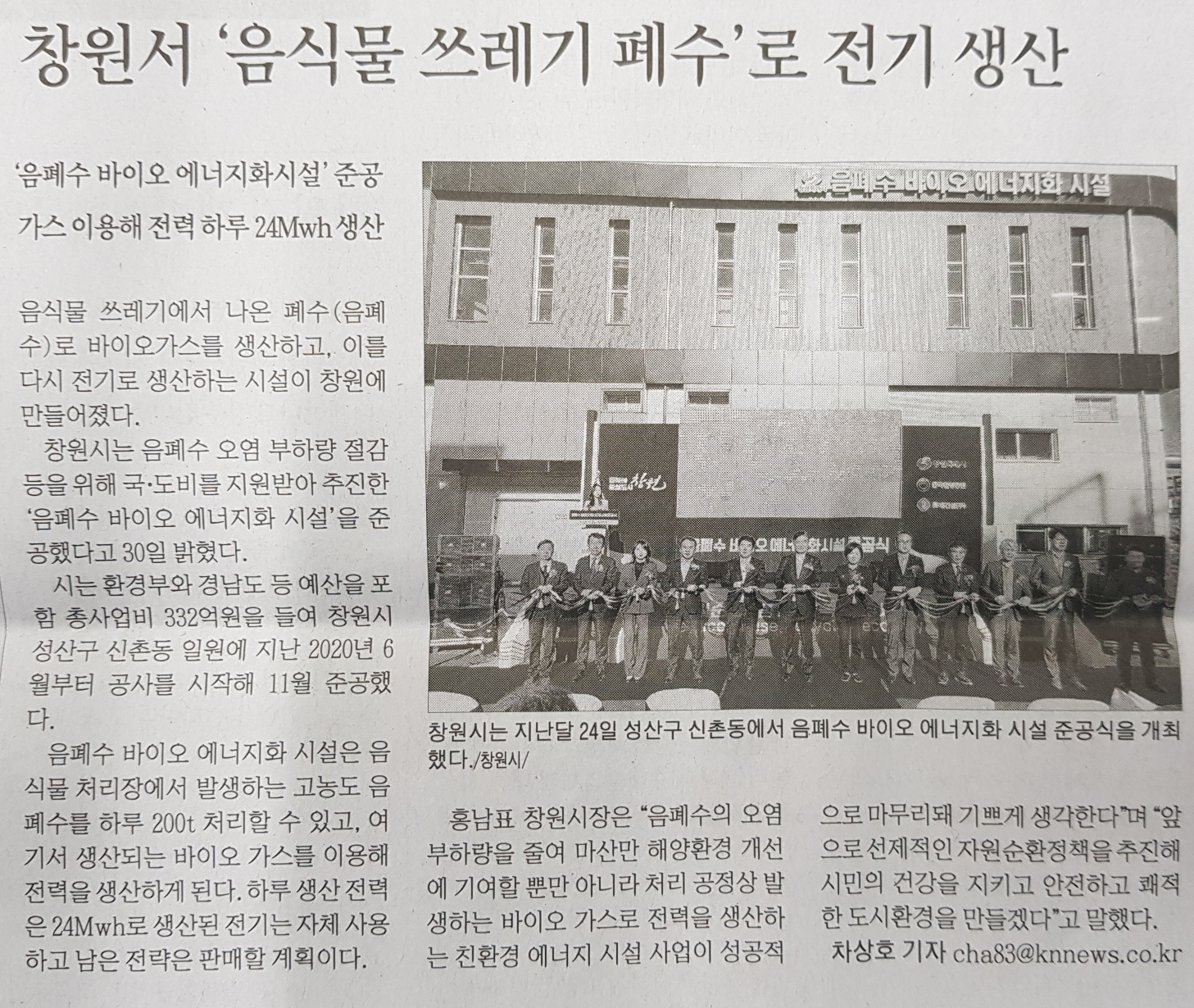 창원서 음식물 쓰레기 폐수로 전기생산.