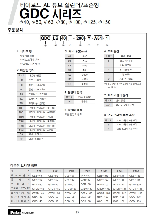 GDC TDM80-350, GDC TDM80-100, GDC TDM80-125, GDC TDM80-150, GDC TDM80-175, GDC TDM80-200, GDC TDM80-250, GDC TDM80-300, 파카 에어실린더.