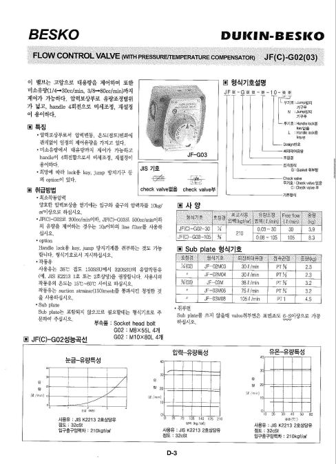 JFC-G02-30, JFC-G03-105, BESKO 플로우 컨트롤 밸브.