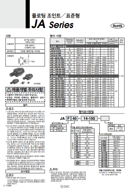 JA30-10-125, JA30-14-150, JA30-18-150, JA30-22-150, JA30-26-150, JA30-30-150, JA30-36-150, SMC 플로팅 조인트.