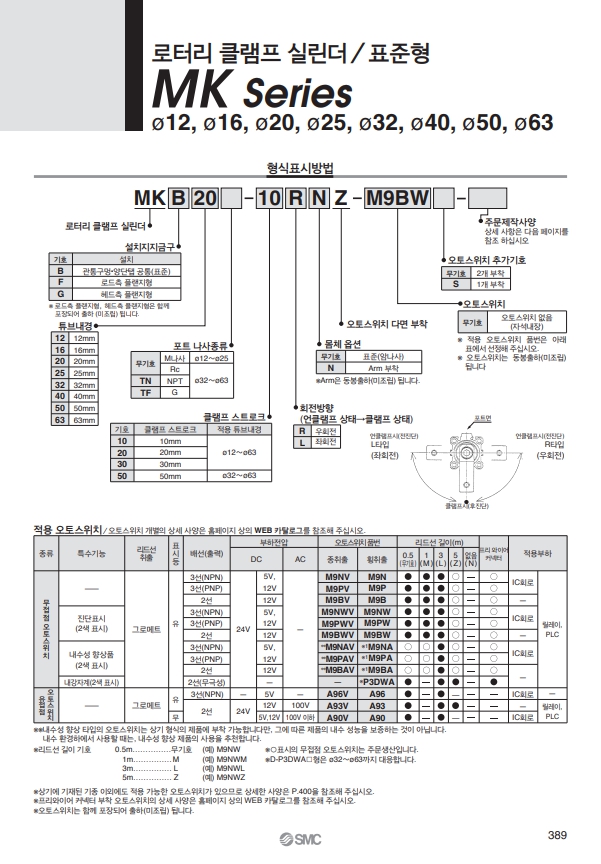MKB32-30LZ, MKB32-10LZ, MKB32-20LZ, MKB32-50LZ, SMC 로터리 클램프 실린더 / 표준형.