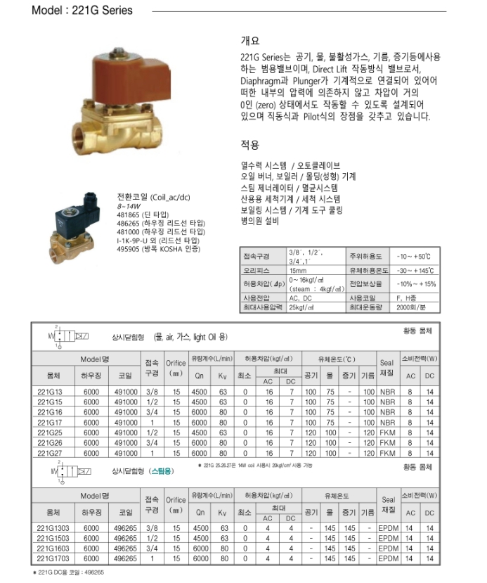 221G15-6000-4910006J, 221G13-6000-4910006J, 221G16-6000-4910006J, 221G17-6000-4910006J, 221G25-6000-4910006J, 221G26-6000-4910006J, 파카코리아 2-WAY 범용 밸브.