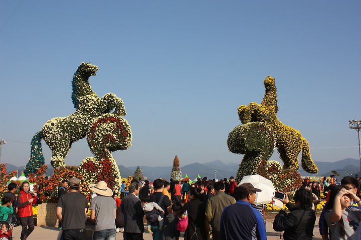 정문을 통과하면 국화를 둘러싸인 말의 형상을 보실수 있습니다.