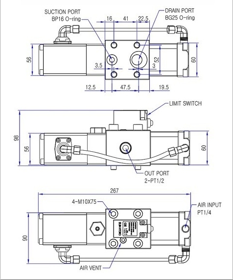 과부하 압력 배런스 밸브이고 사이드에 아웃 포트가 있는 타입입니다.