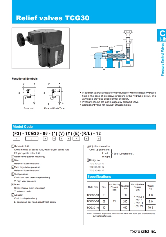 TCG30-03-FV-K, TCG30-06-FV-K, TCG30-10-FV-K, 도키멕 릴리프밸브.
