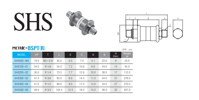 SHS300-03, SHS050-M5, SHS100-01, SHS200-02, SHS400-04, SHS500-06, TPC 핸드 밸브.