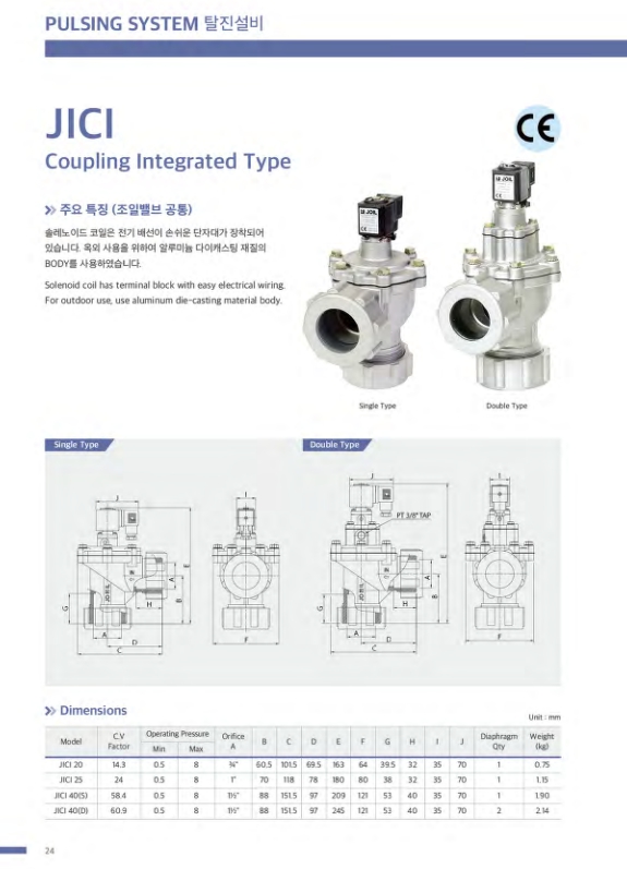 JICI40(D)220V, JICI40(S), JICI20, JICI25, 조일밸브.
